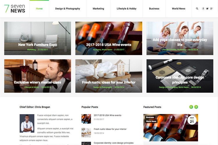 An overview of post types, page templates, shortcodes and plugins neatly organized in one demo. Main demo also features numerous home and other pages concepts, Slider Revolution templates
